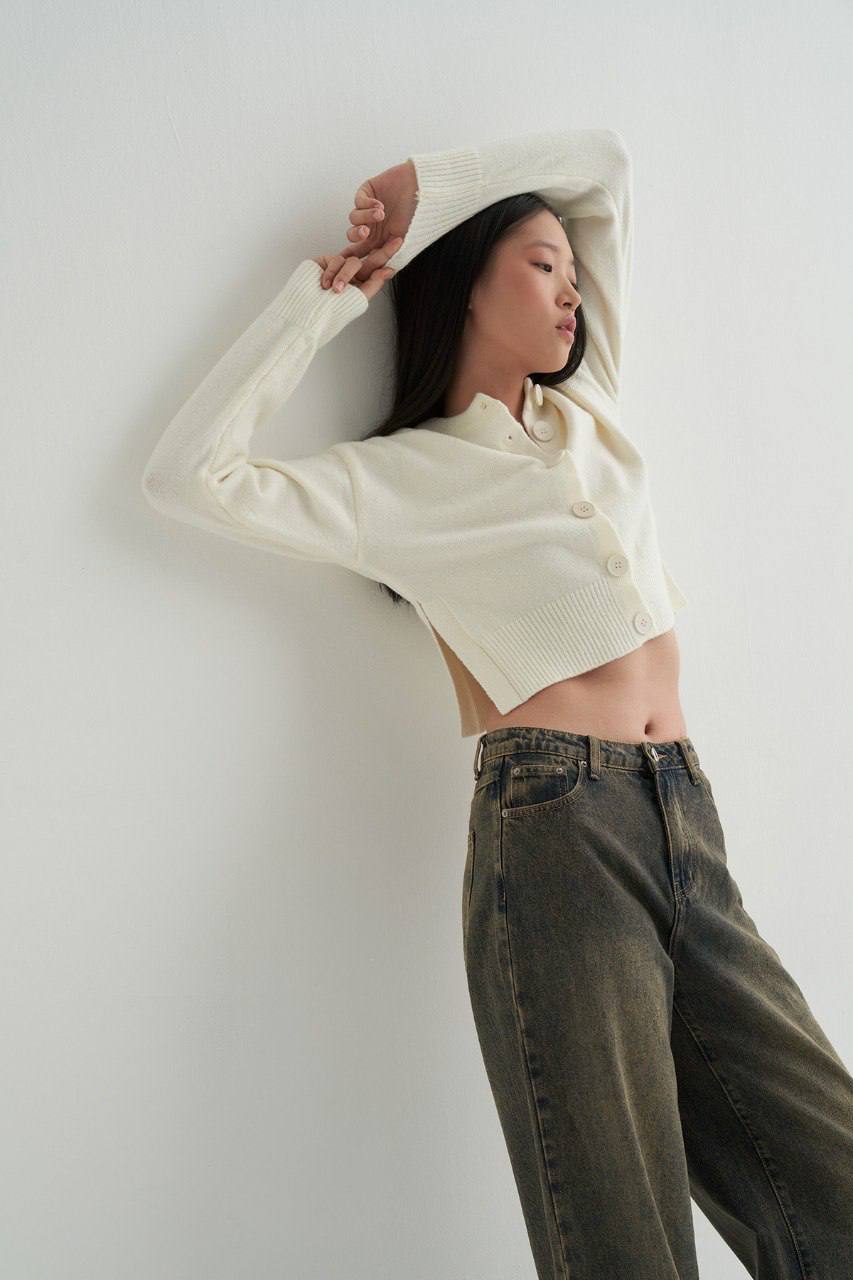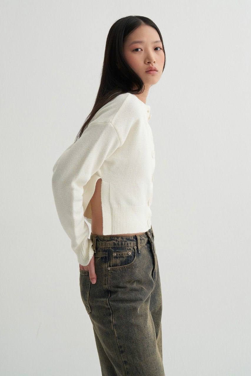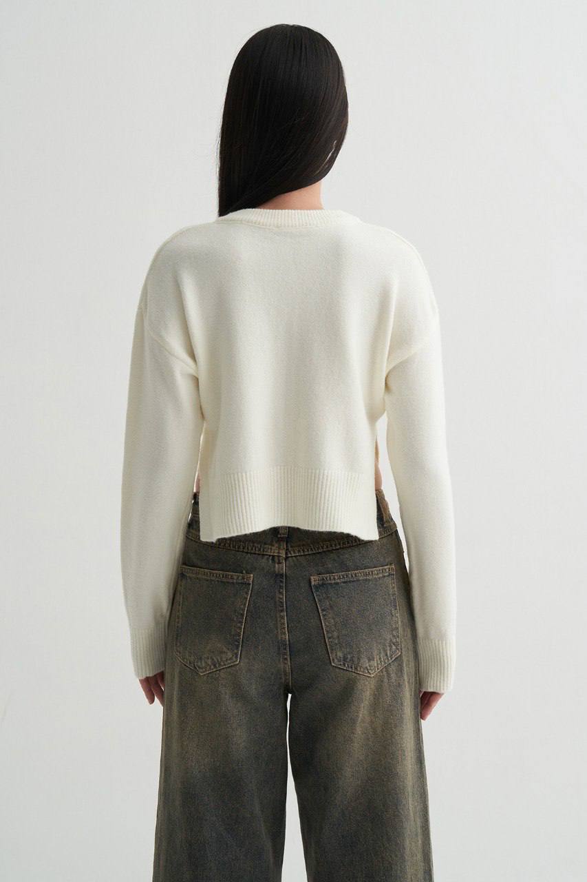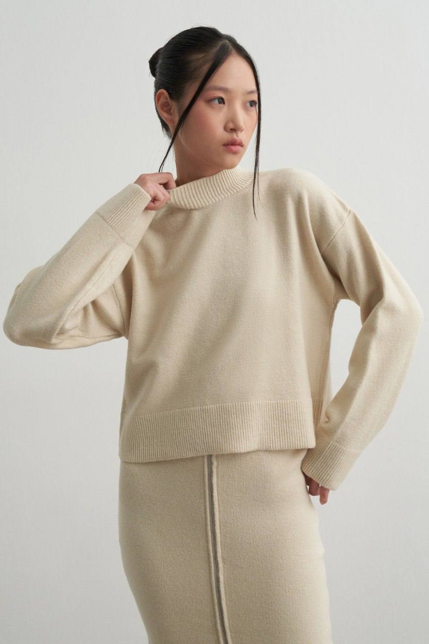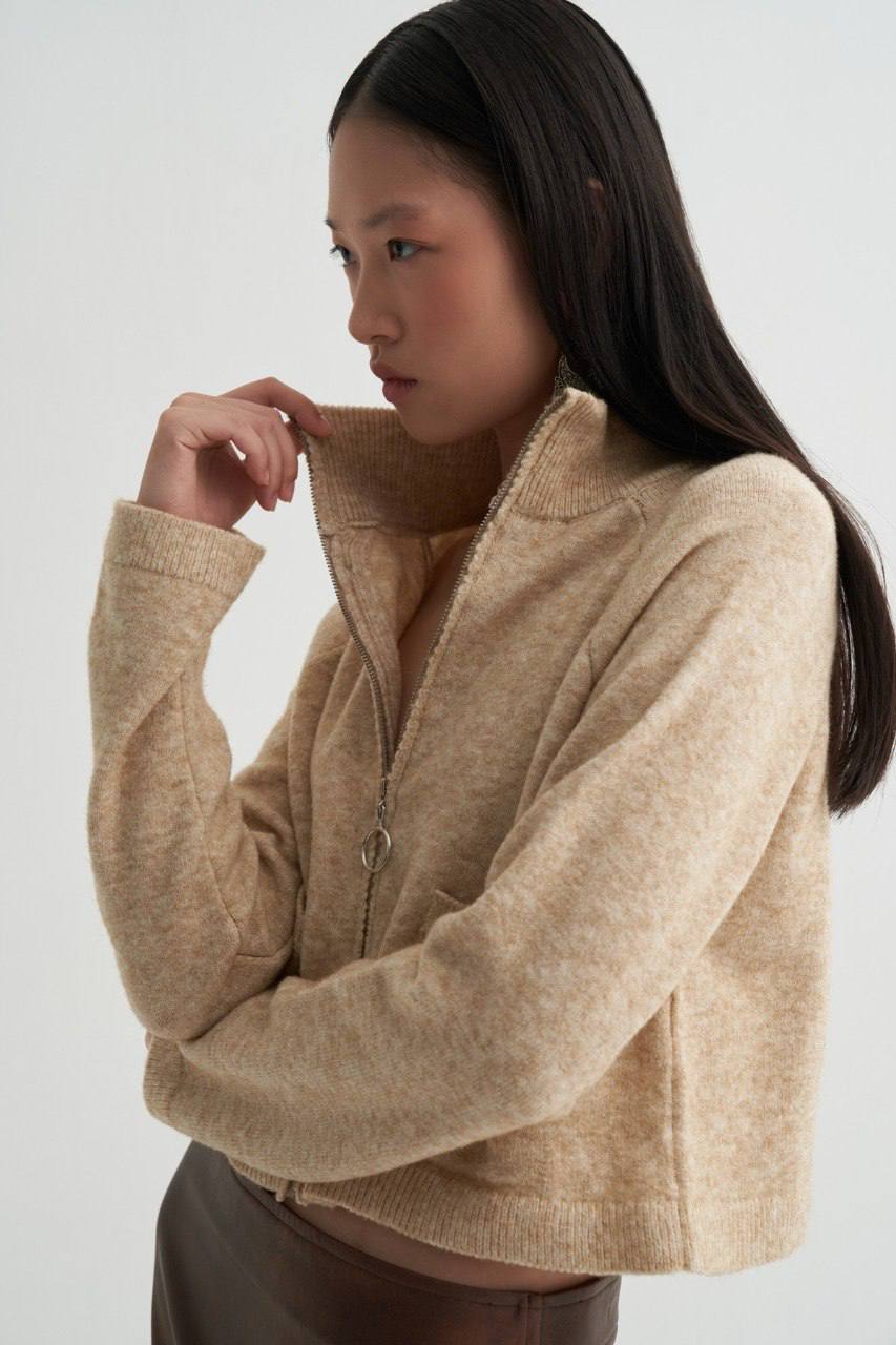 Свитер оверсайз с воротником-поло, полосатый, с вышивкой, бежевый