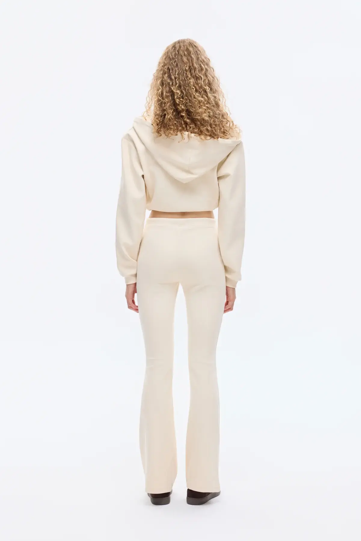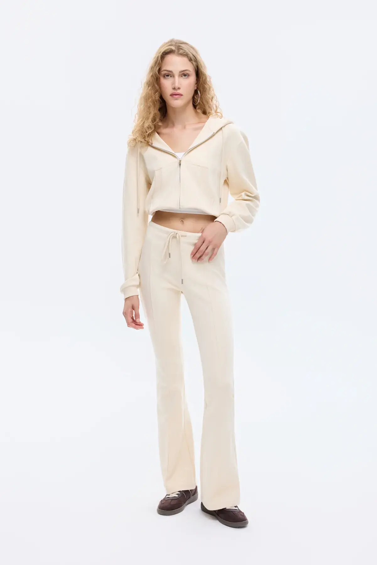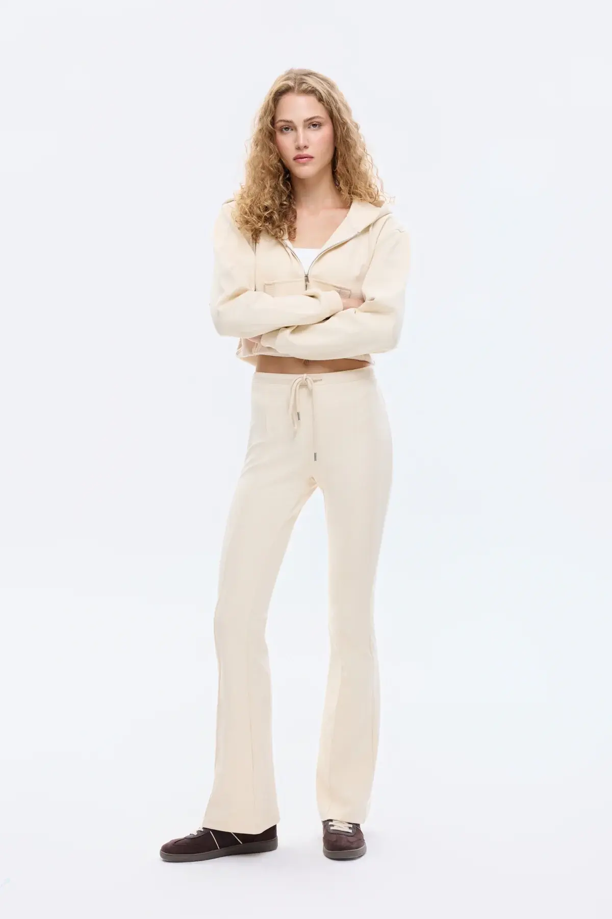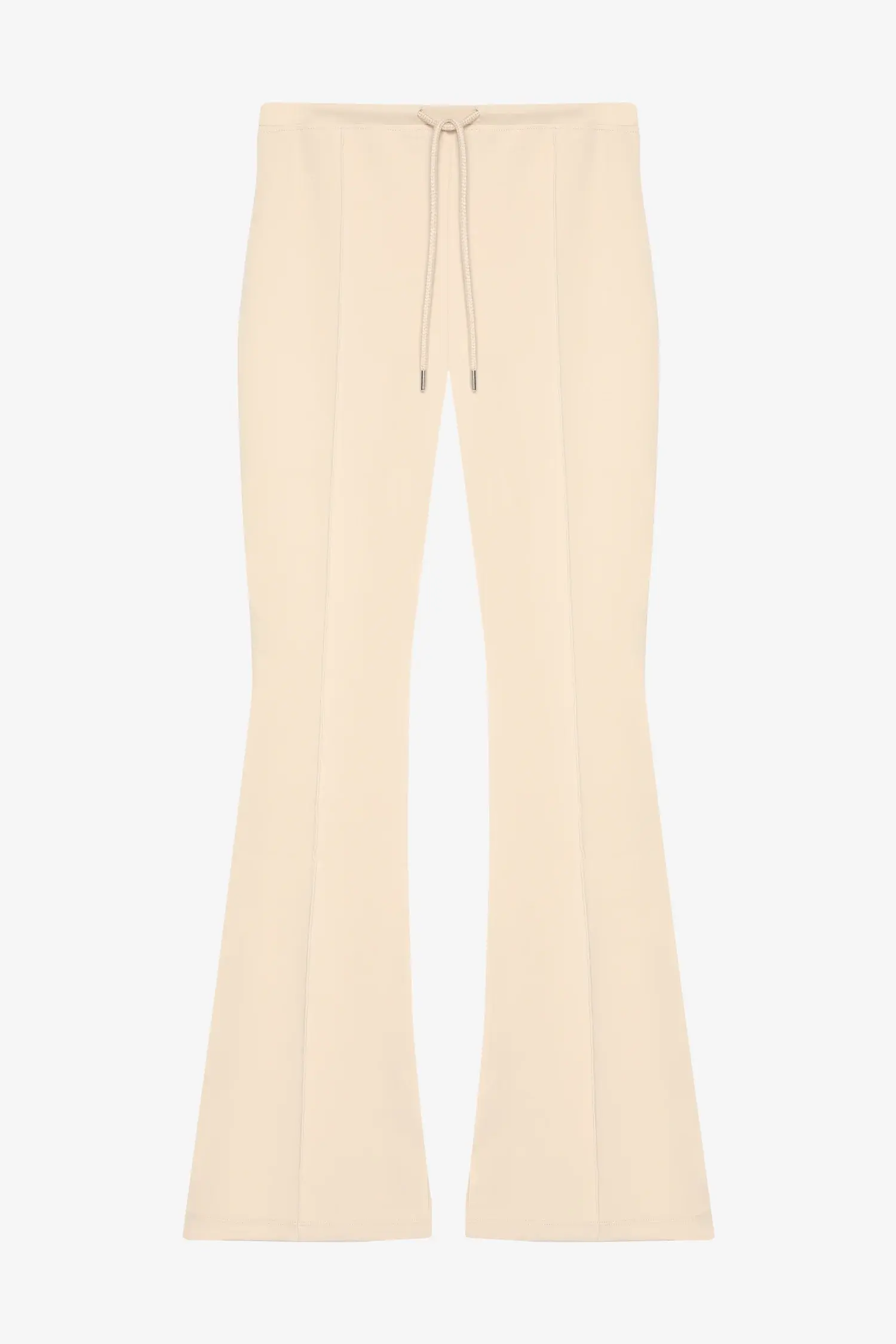 Брюки с испанскими штанинами, поясом на шнурке и деталями на шве, бежевого цвета