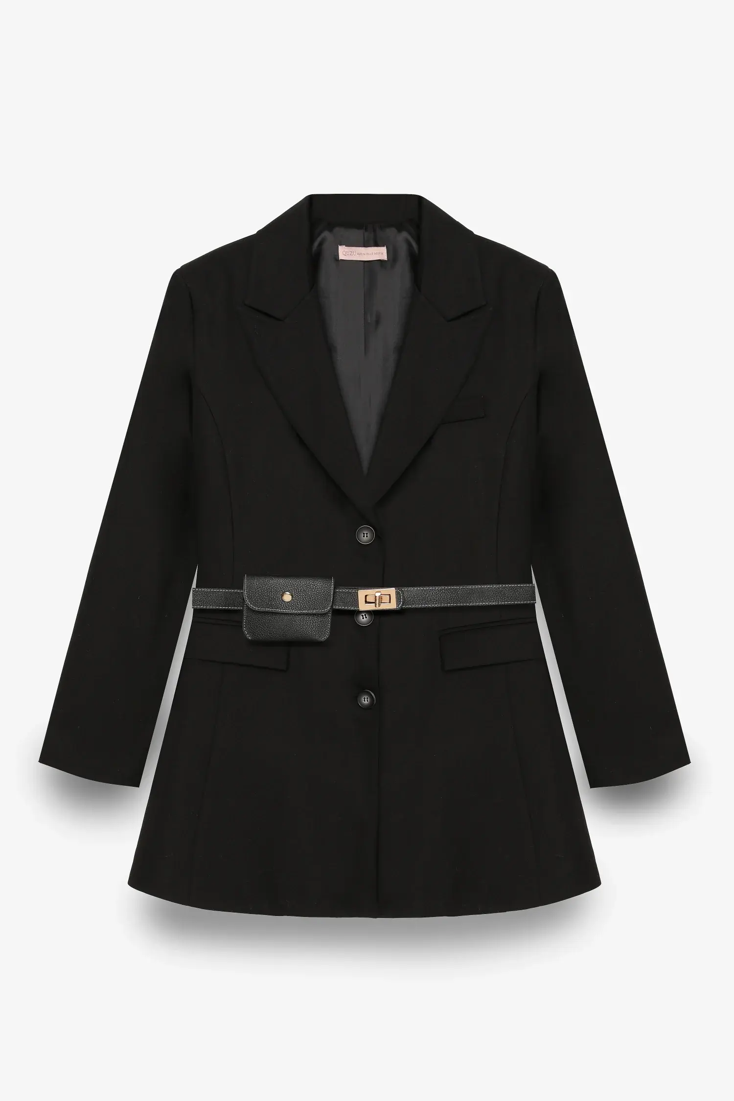Блейзер-платье с поясом и аксессуарами, черный 26KELB00929-001-S