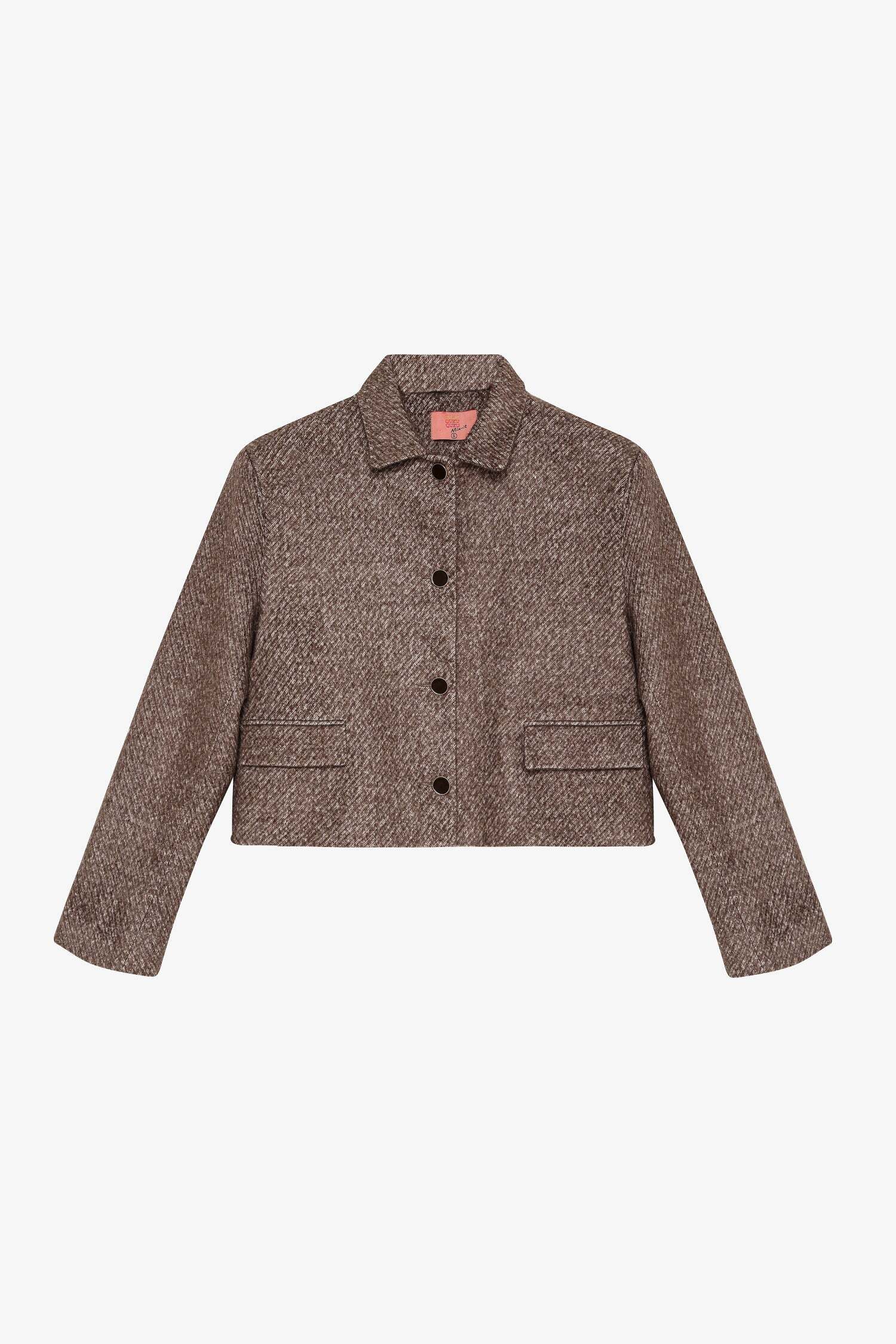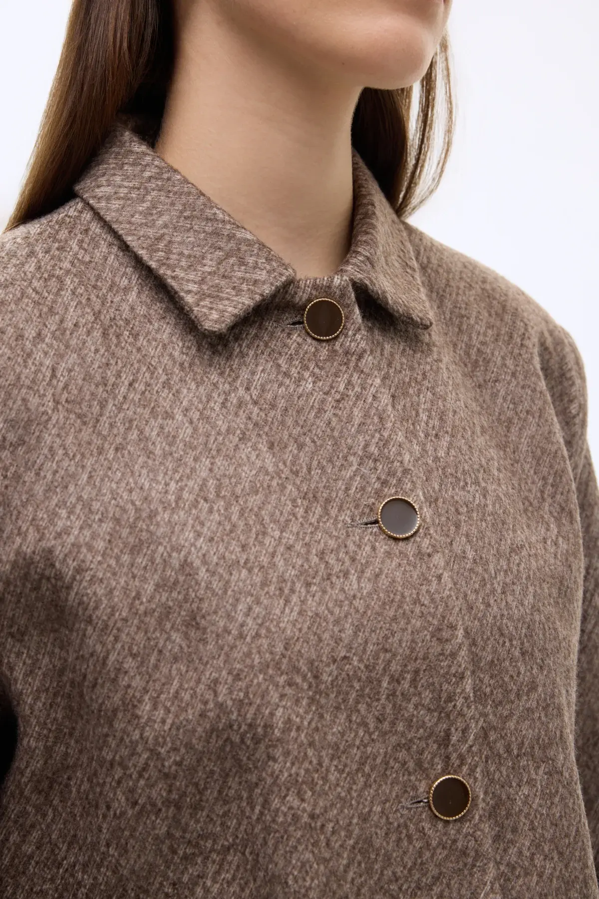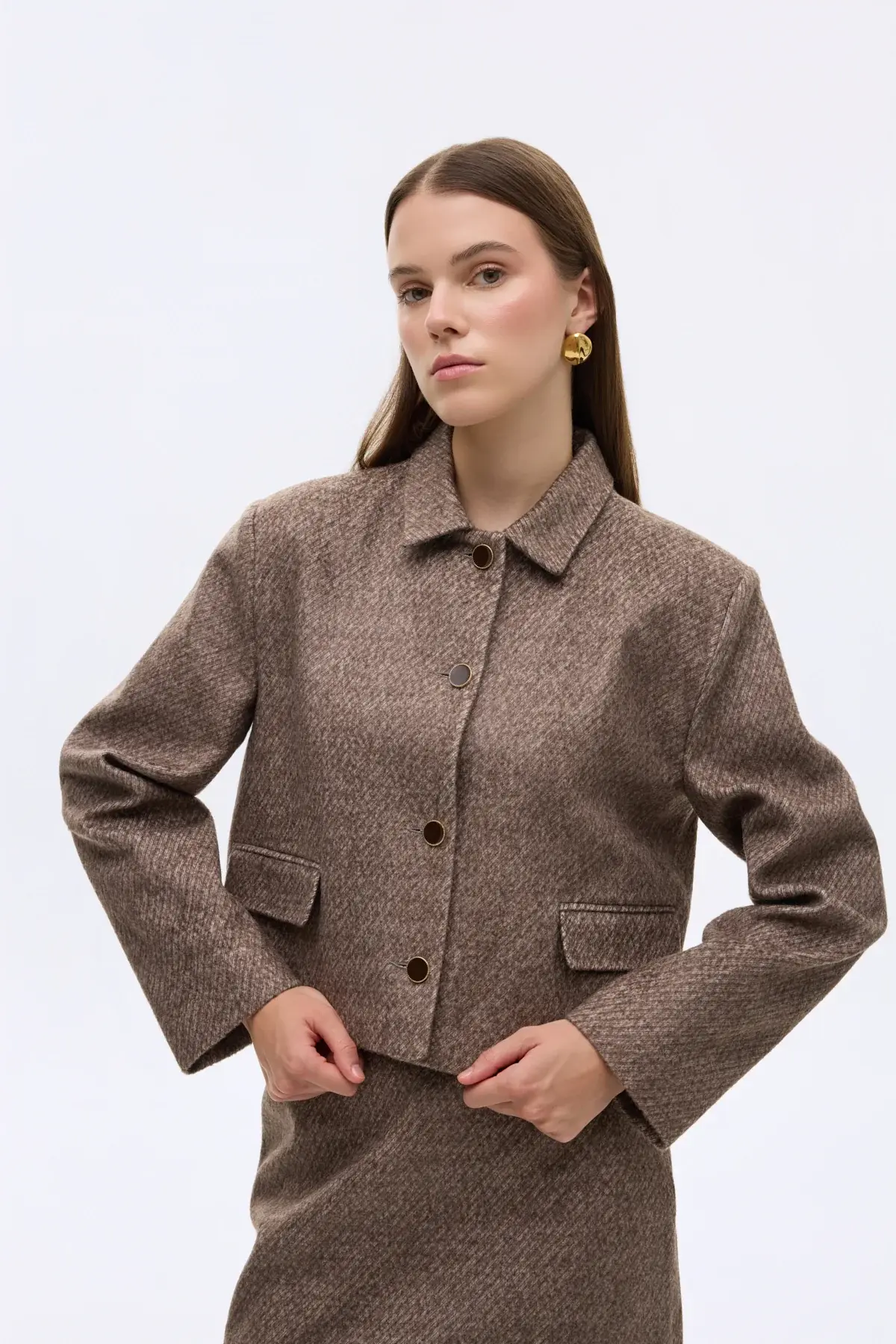 Жакет с текстурированной крышкой, карманом и пуговицами, коричневый