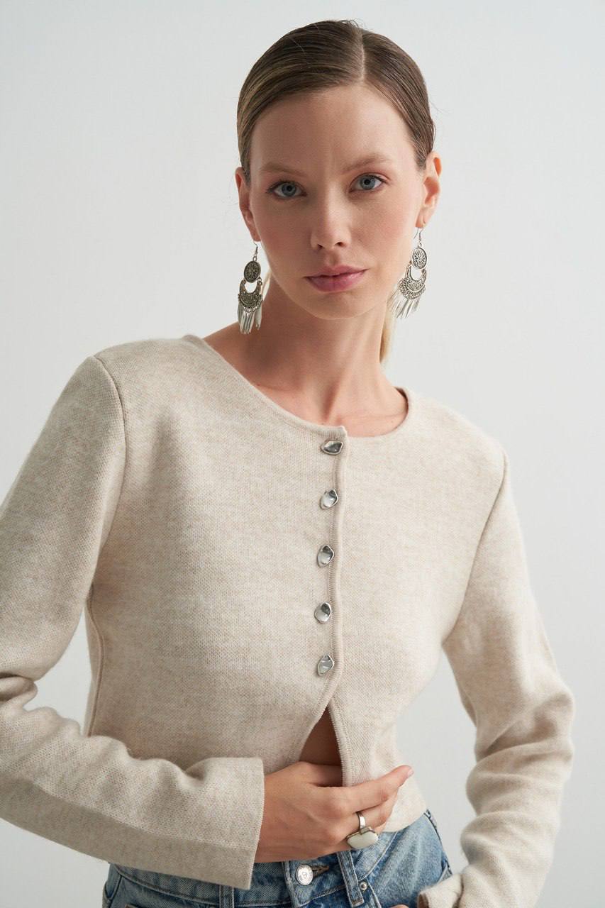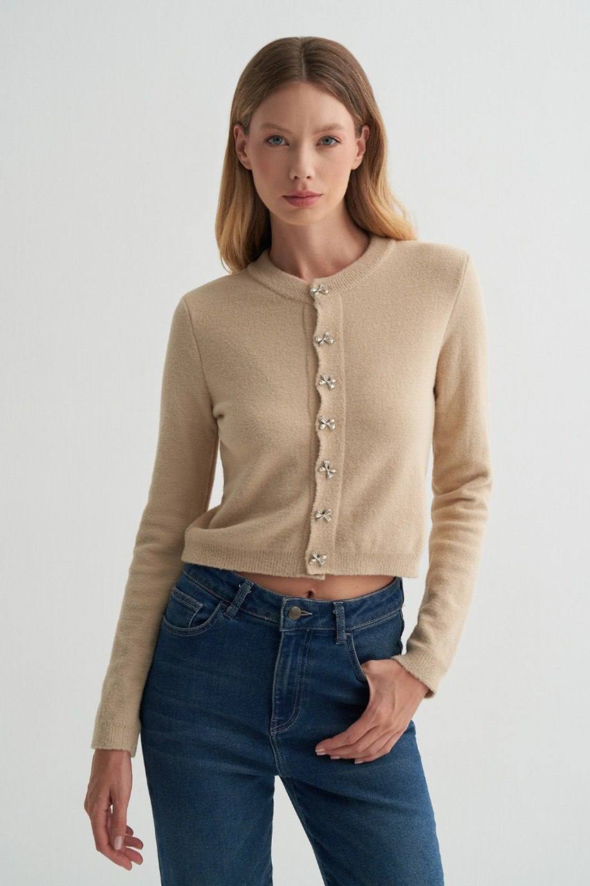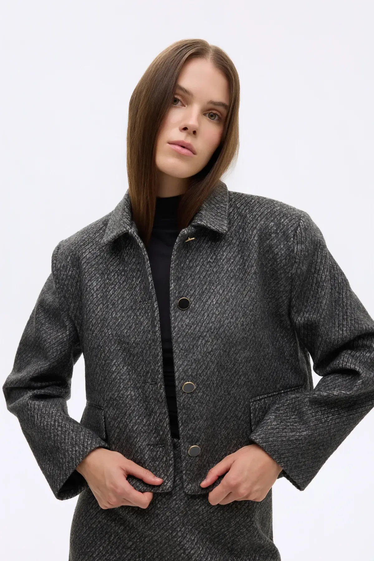 Жакет с текстурированной крышкой, карманом и пуговицами, коричневый