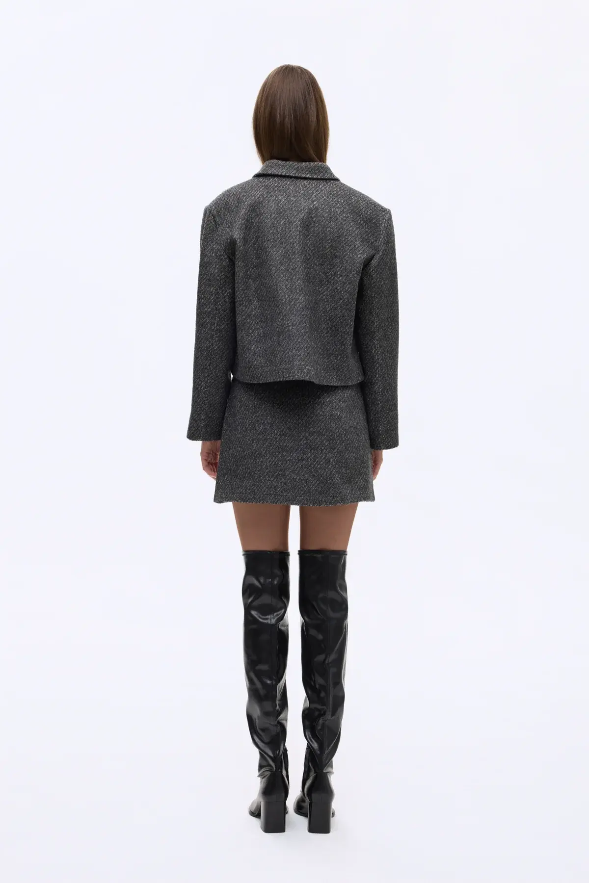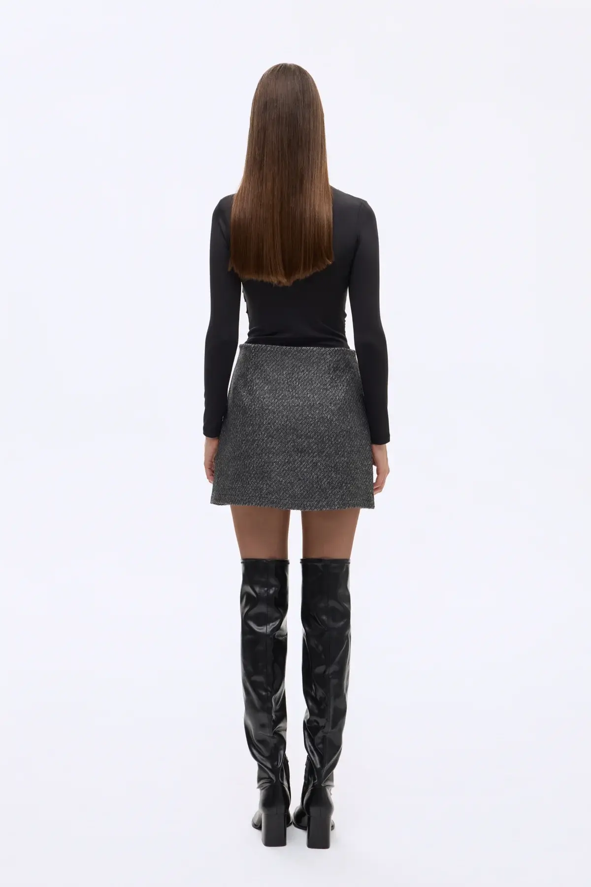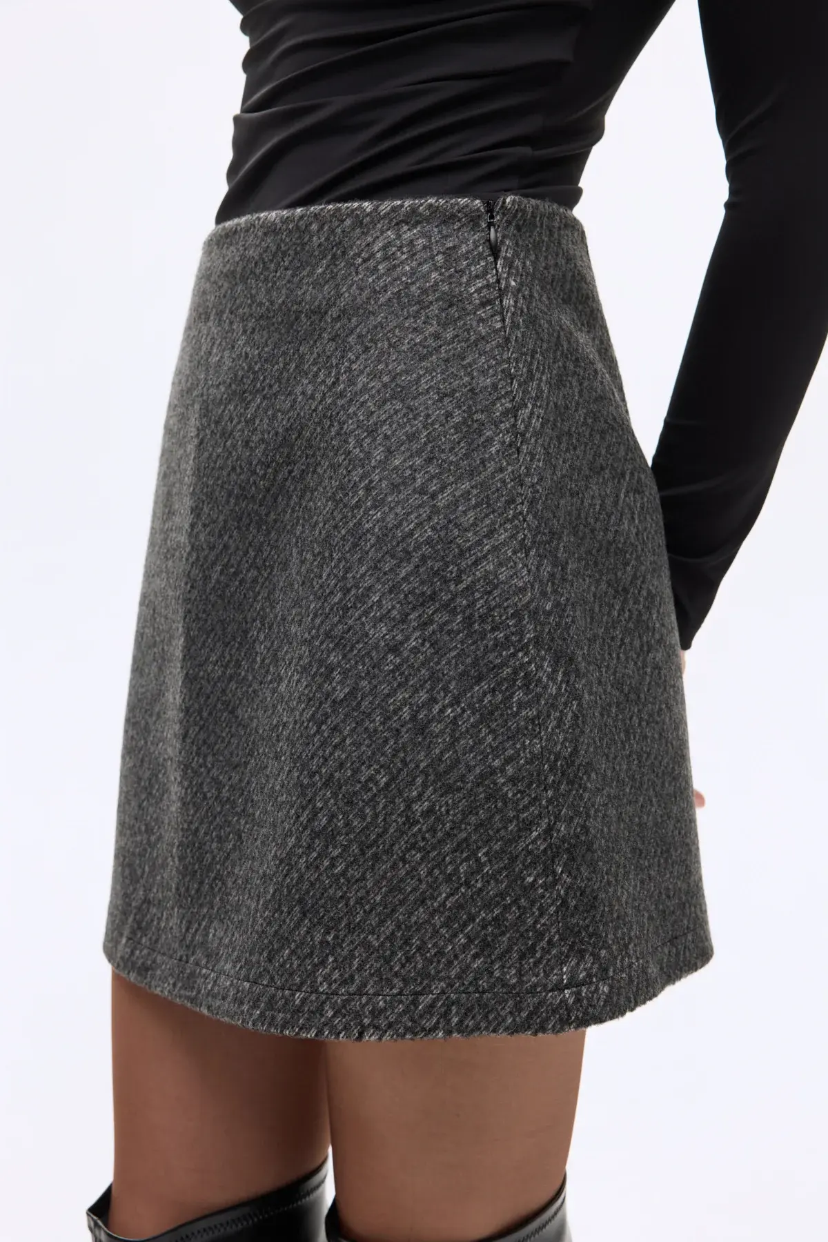 Текстурированная мини-юбка черного цвета с вырезом в виде колокольчика