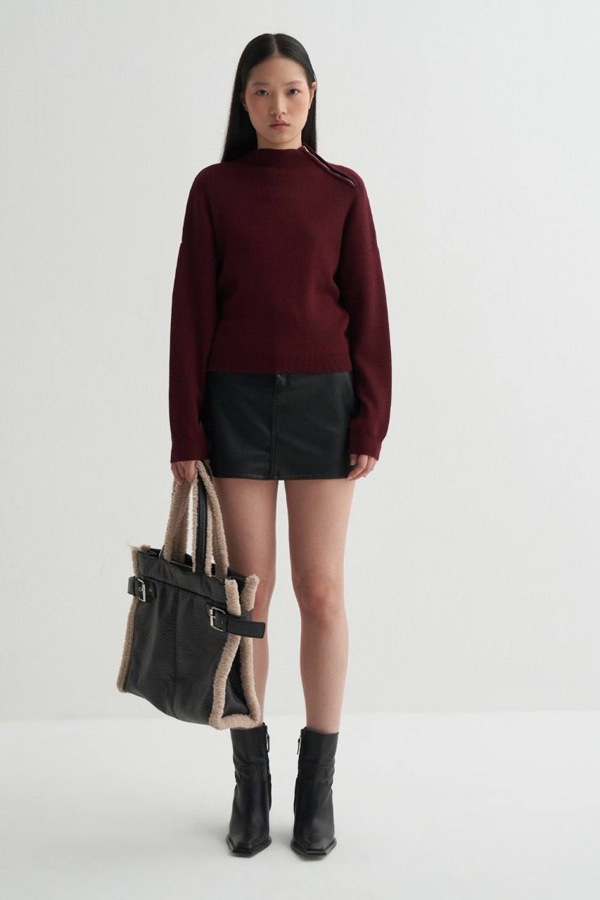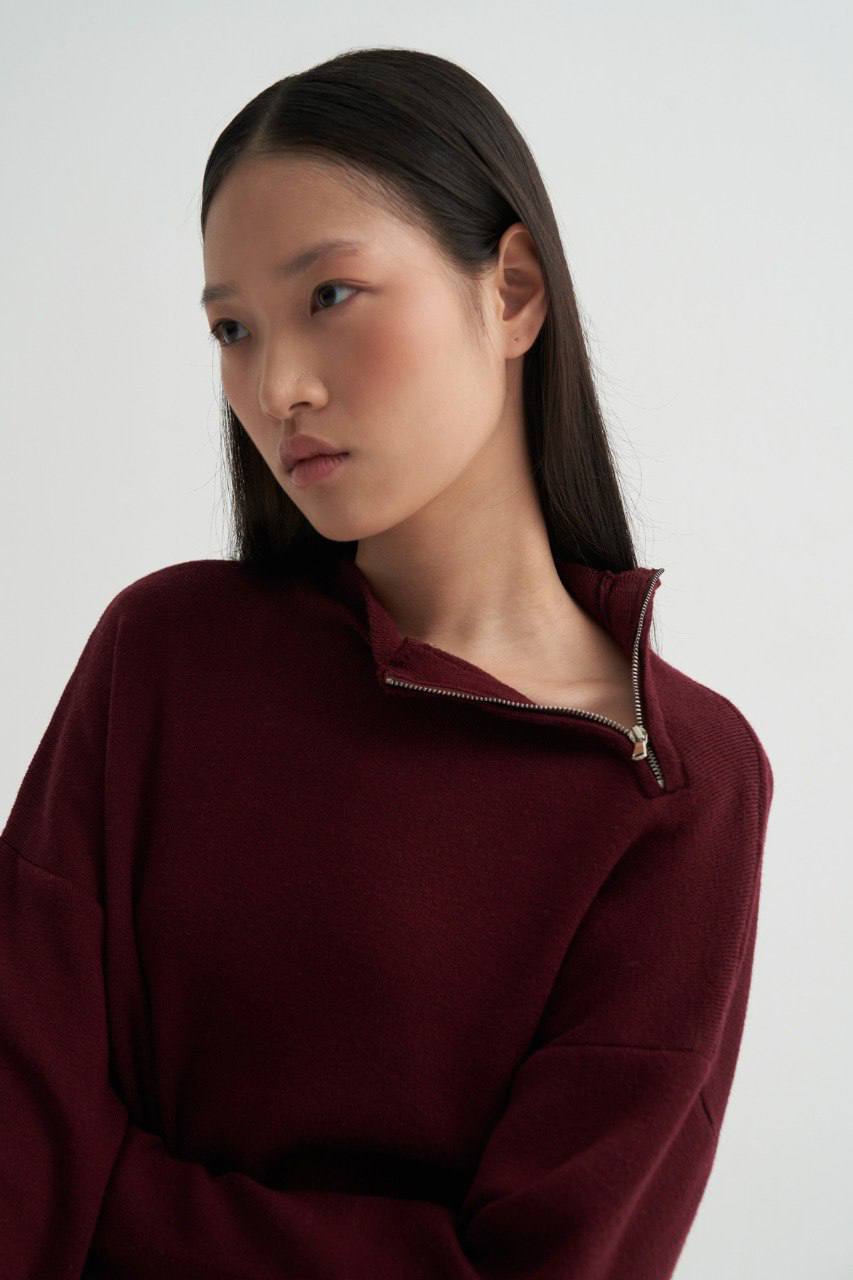 Свитер-поло с принтом Wisconsin Oversize сливового цвета
