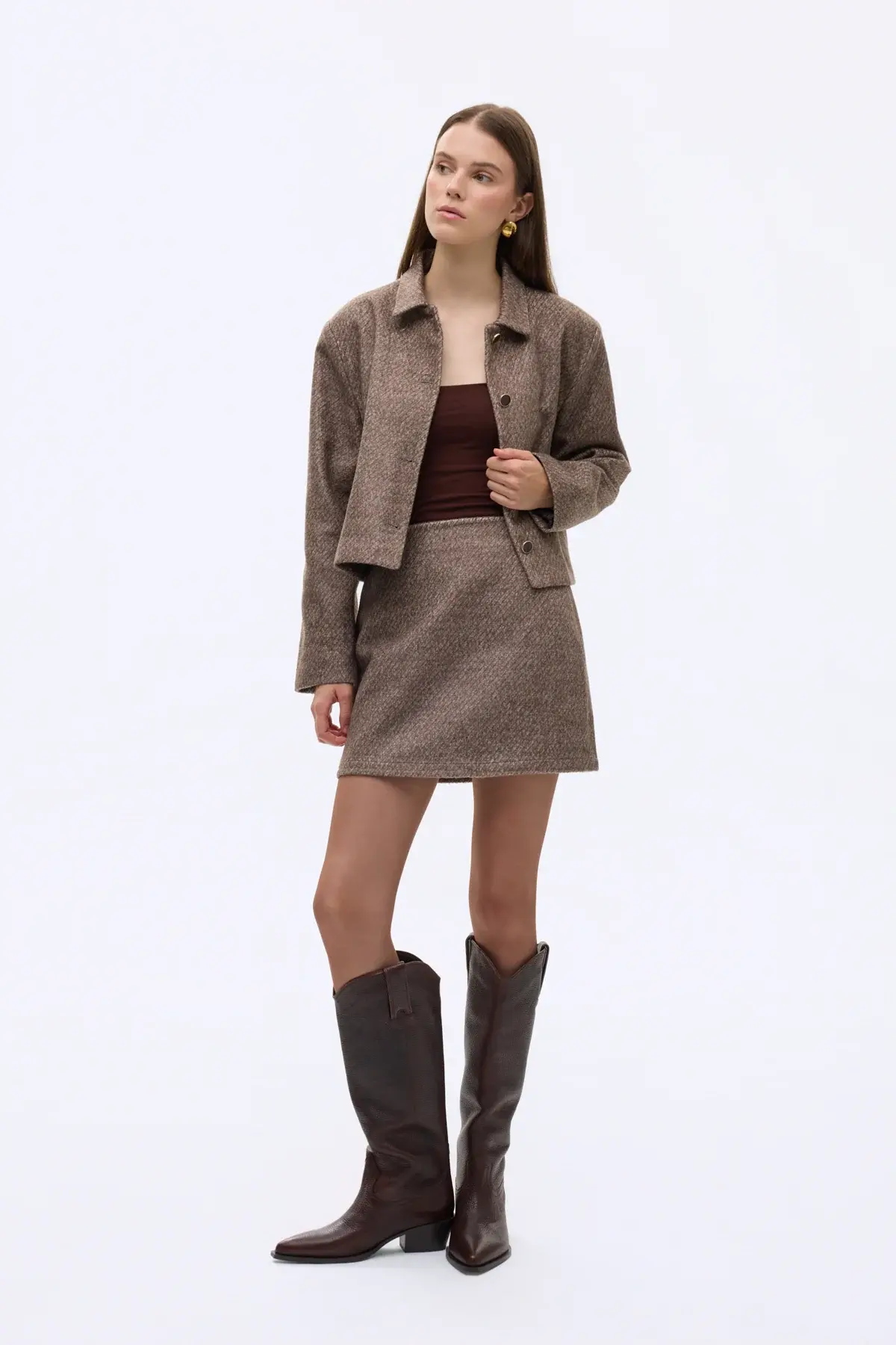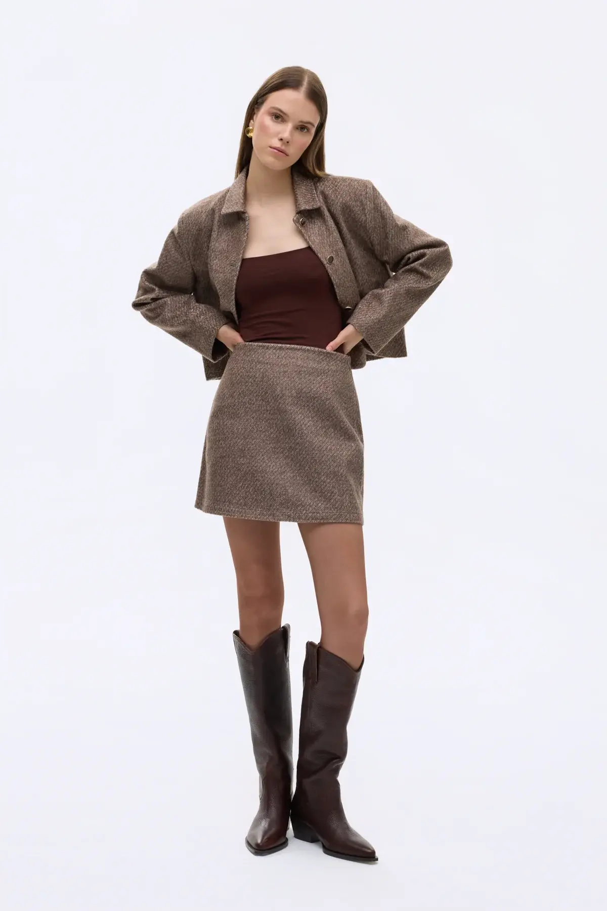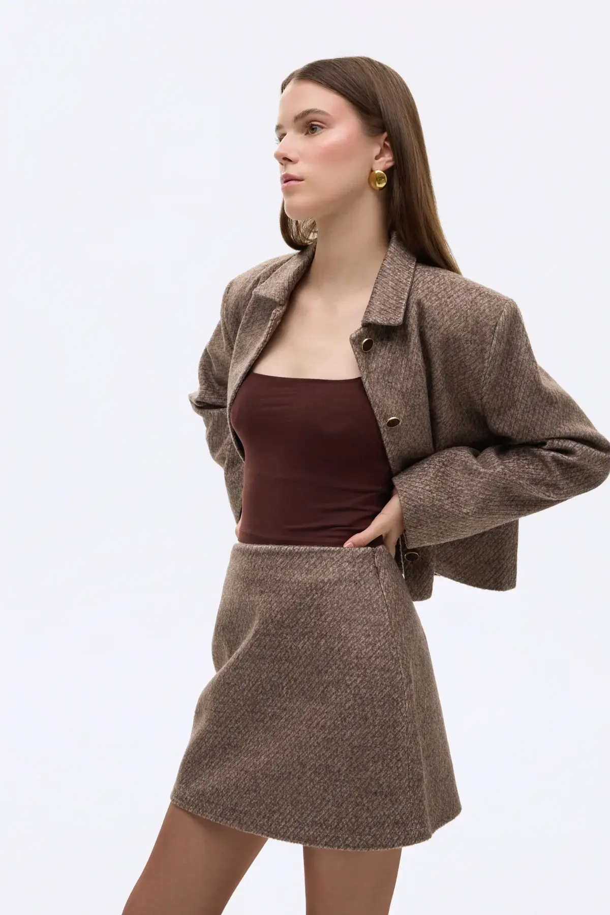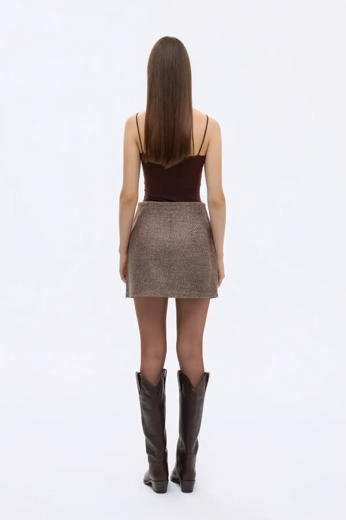 Коричневая текстурированная мини-юбка с вырезом в виде колокольчика