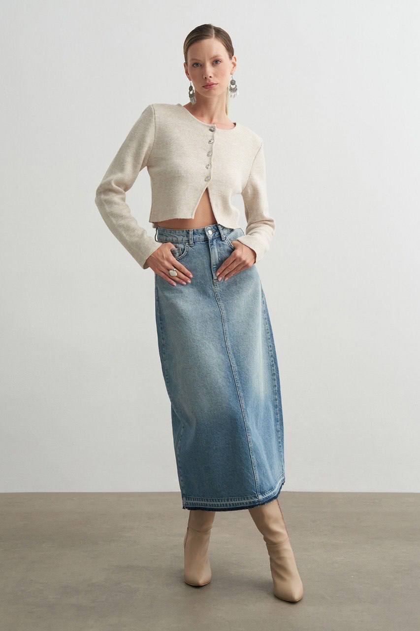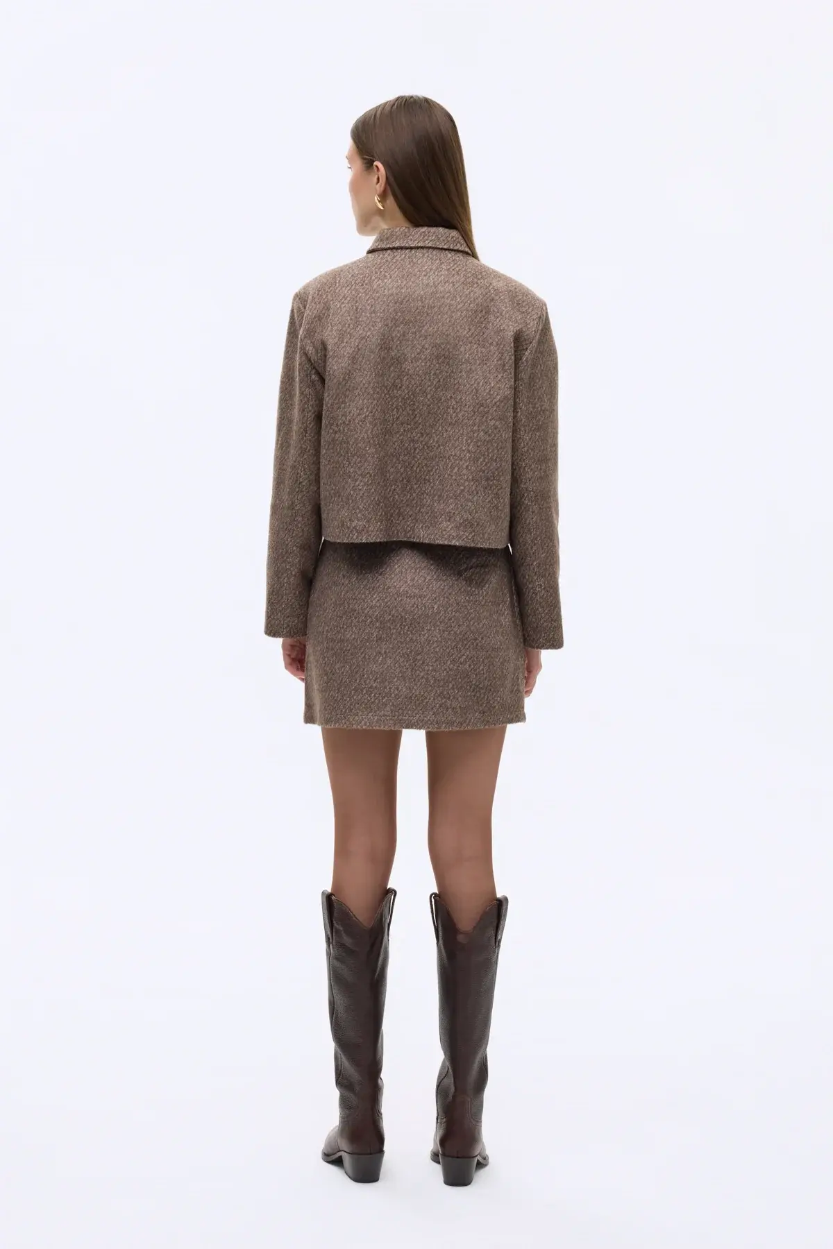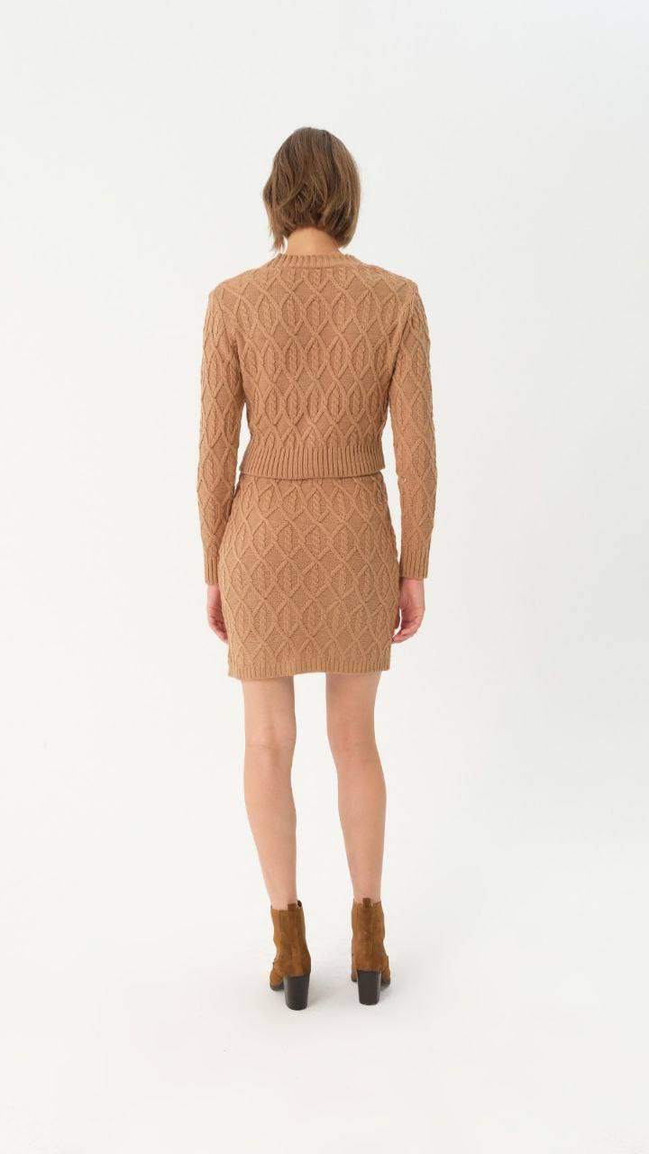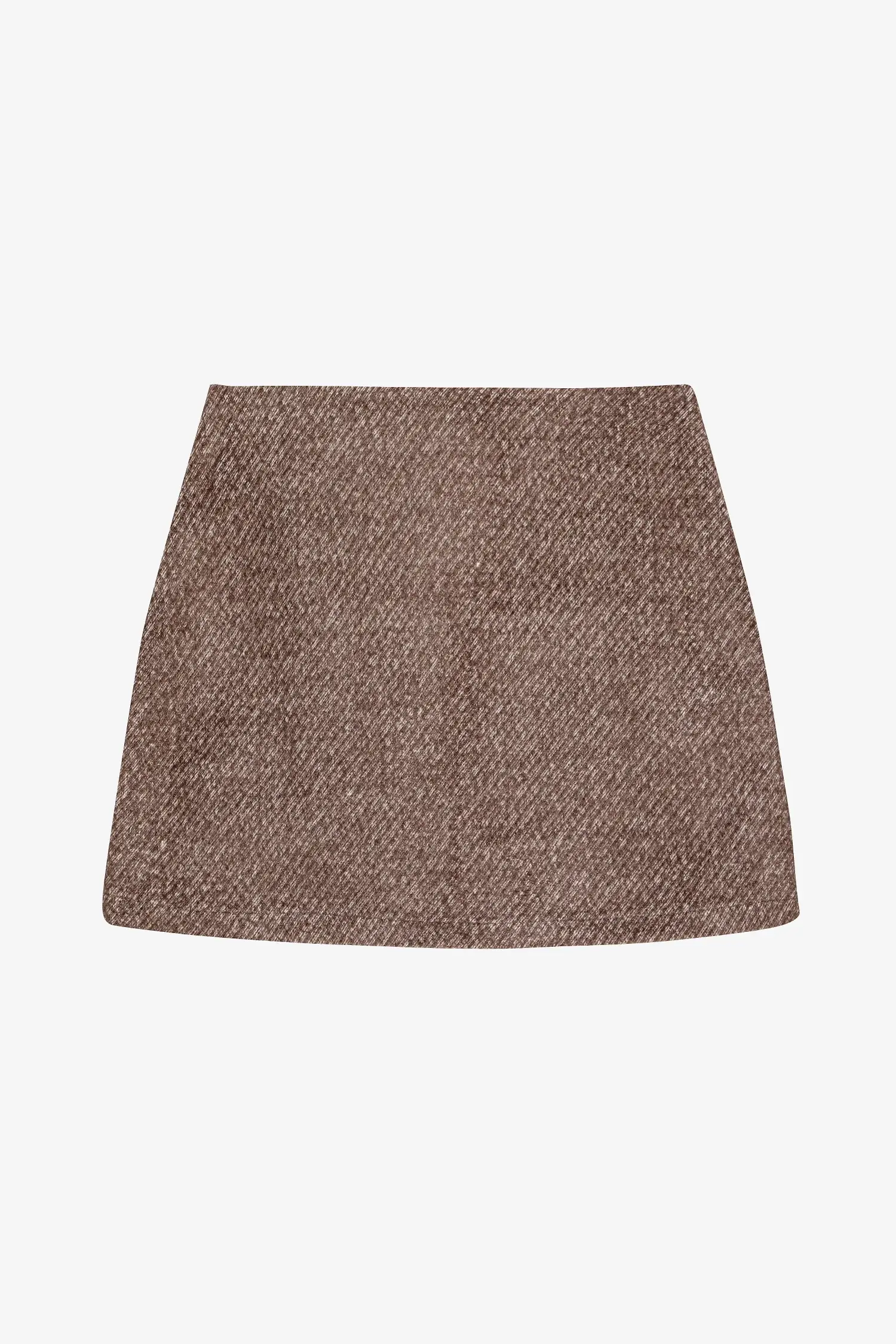 Коричневая текстурированная мини-юбка с вырезом в виде колокольчика