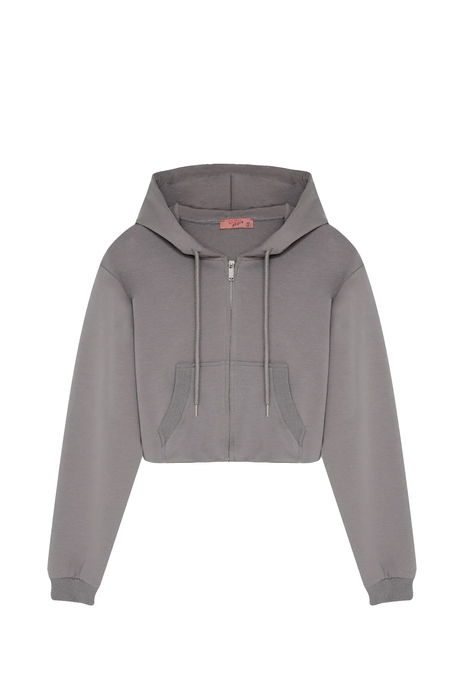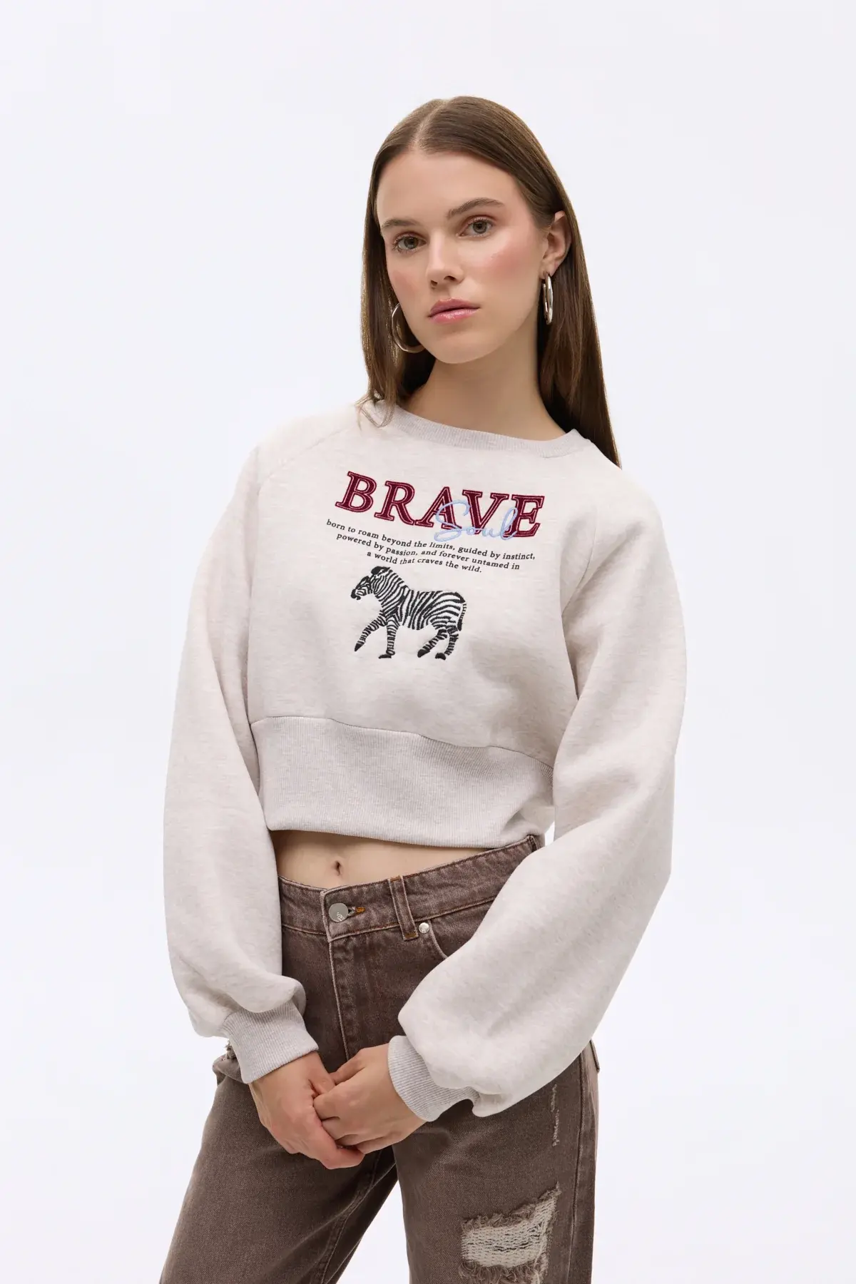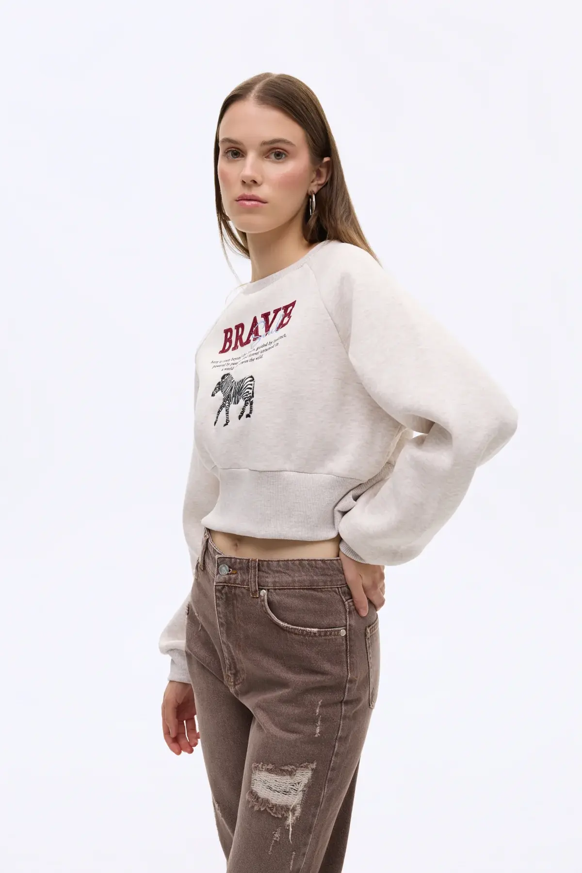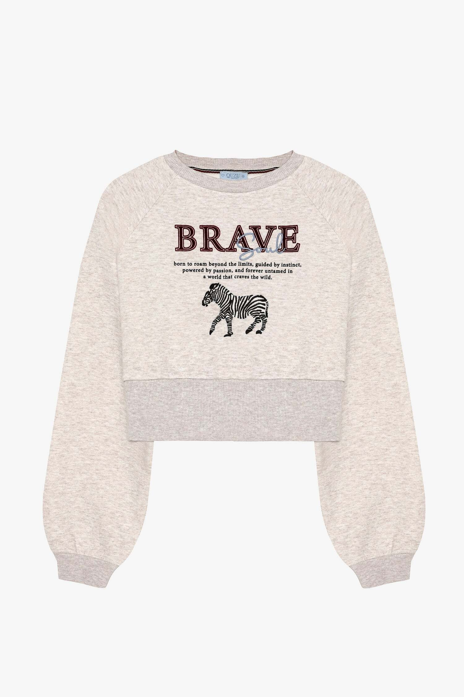 Серый свитшот с вышивкой зебры и застежкой-молнией на спине 26КСВТ01022-004-С