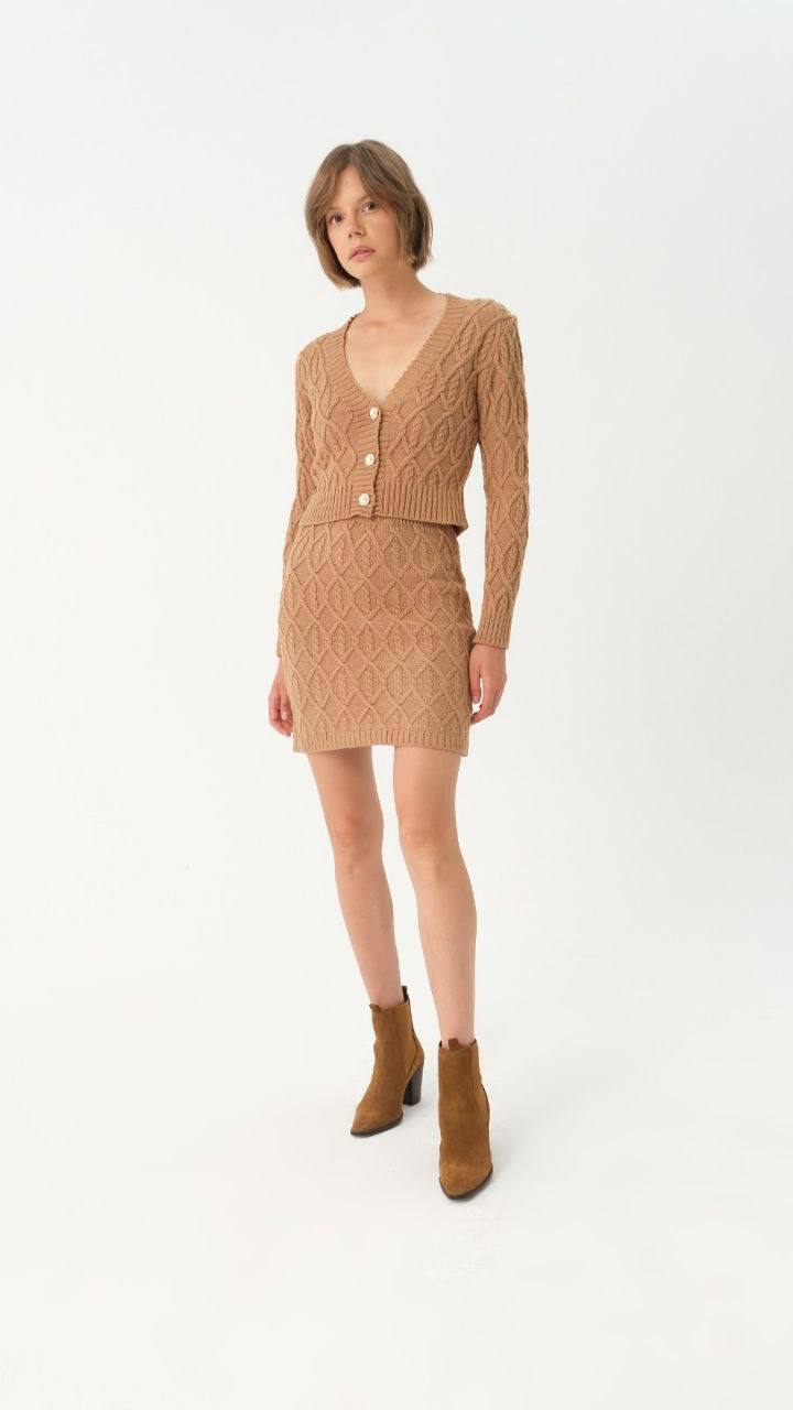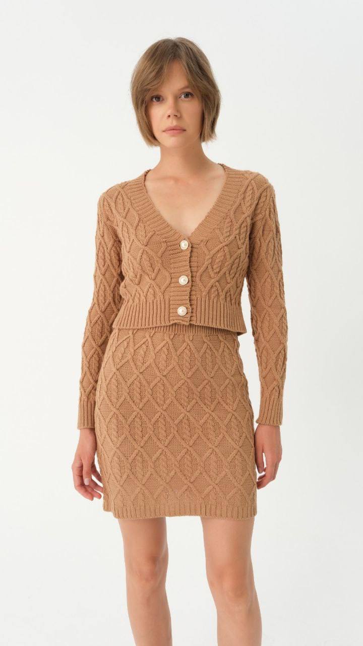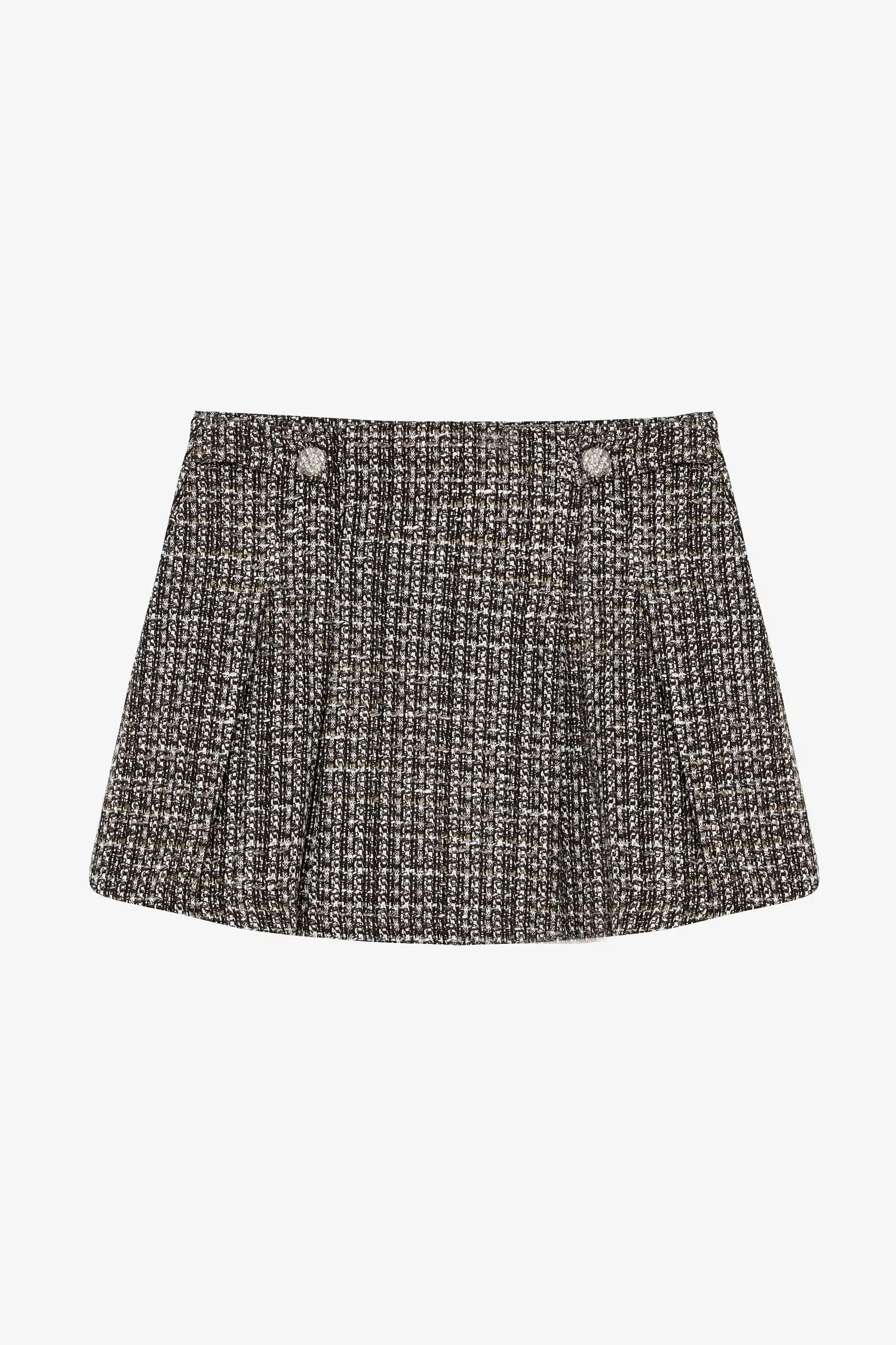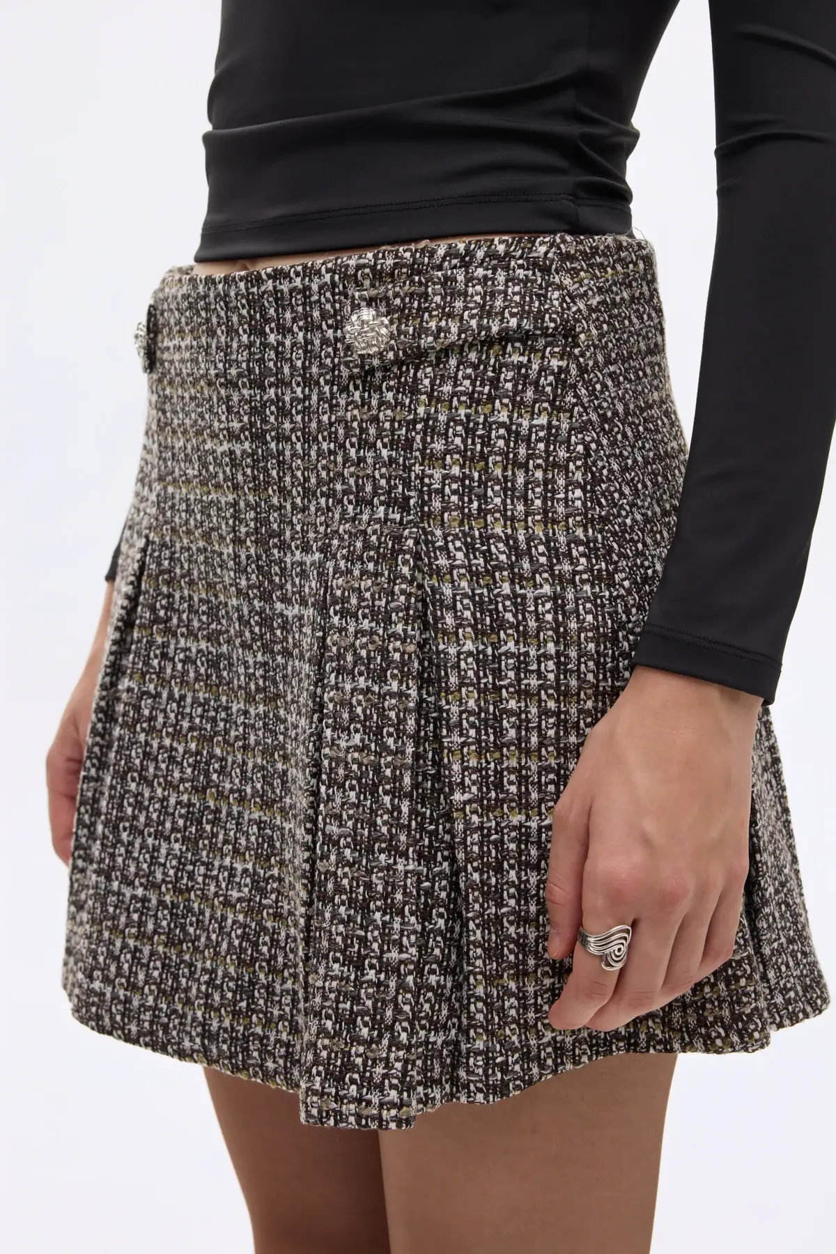 Мини-юбка из твида с плиссировкой и пуговицами, коричневая 26KETK00879-035-С