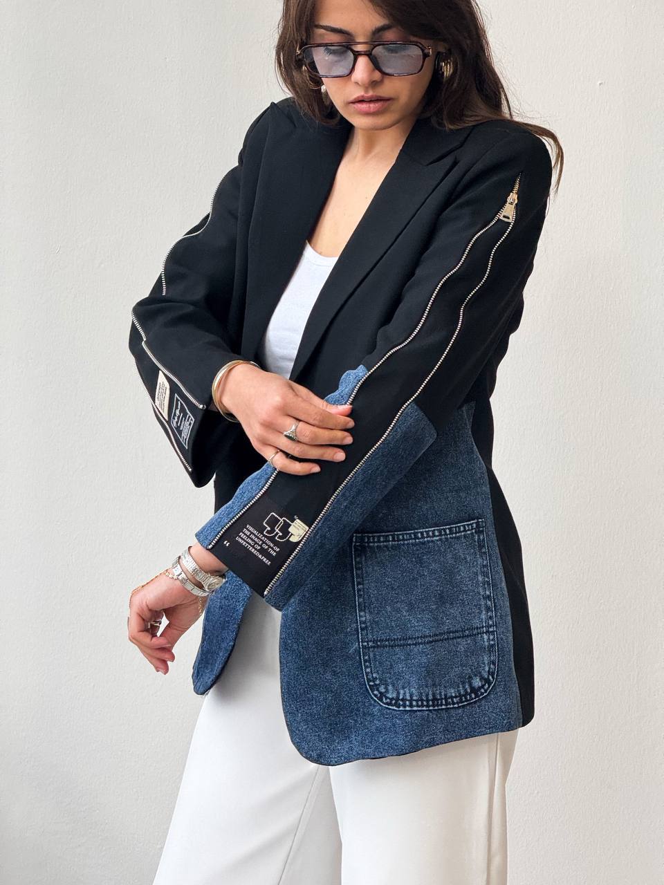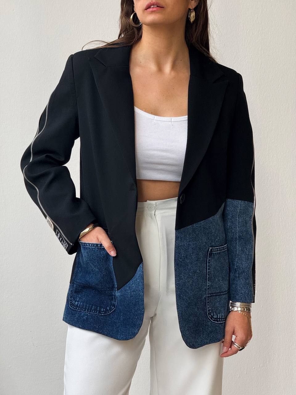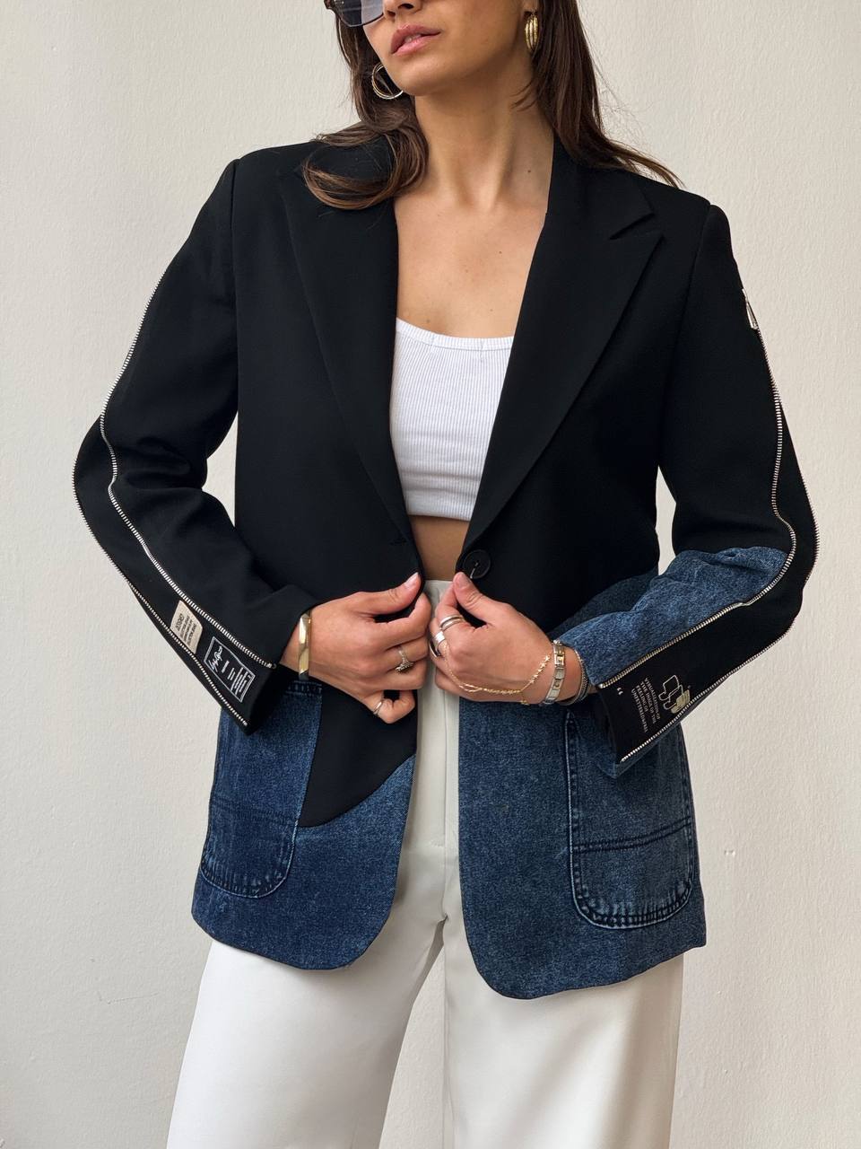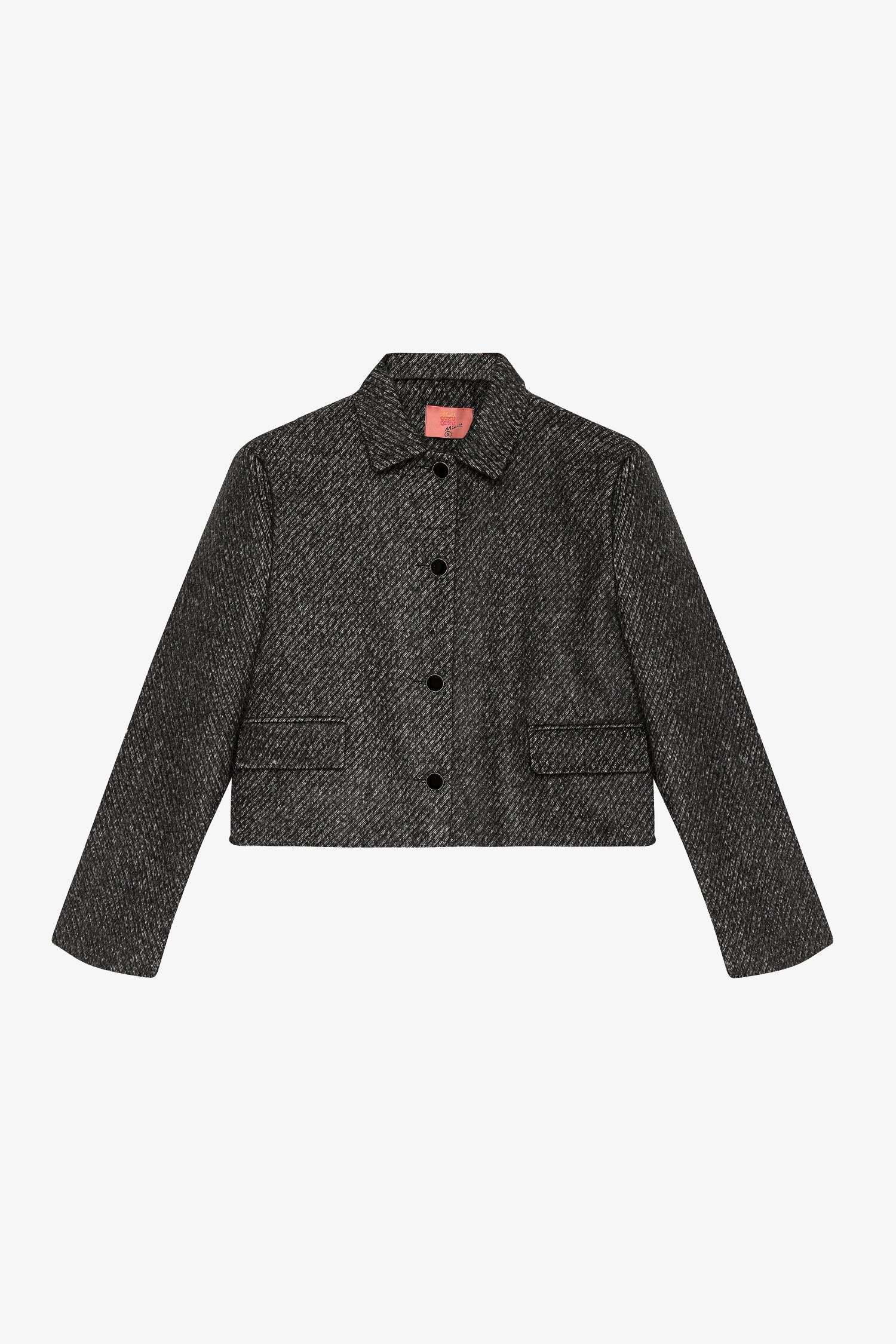 Жакет на пуговицах с клетчатым карманом и капюшоном, черный